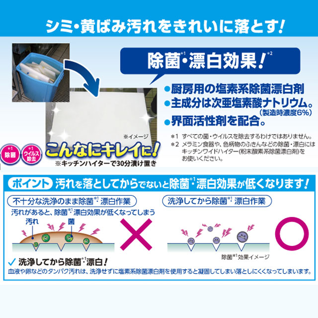厨房の除菌・漂白・消臭に。界面活性剤を配合した塩素系除菌漂白剤です。