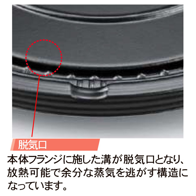 脱気口があるため放熱可能で余分な蒸気を逃がす構造になっています。