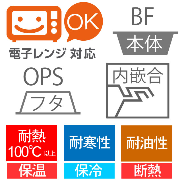 ●本体:BF/レンジOK・耐熱105℃・断熱・保温・耐油・耐寒・省資源
