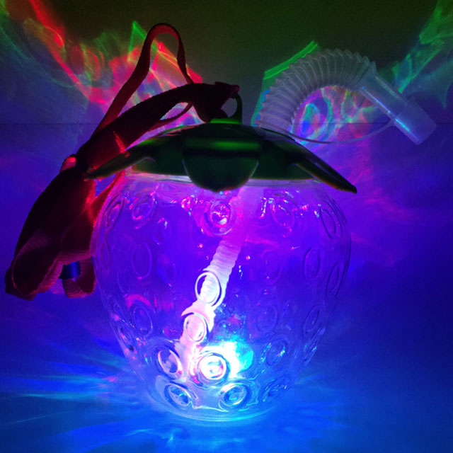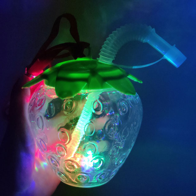 イベントやお祭りで大人気の光るいちご型のペットボトルです。