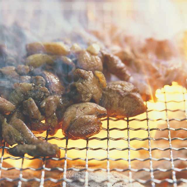 宮崎名物地鶏の炭火焼を作るのに最適な取っ手付きの焼き網です。