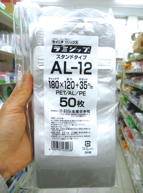 スタンドタイプの規格袋です。アルミラミネートフィルムを使用し、防湿性・ガスバリア性に優れ、商品を日焼けから守ります。