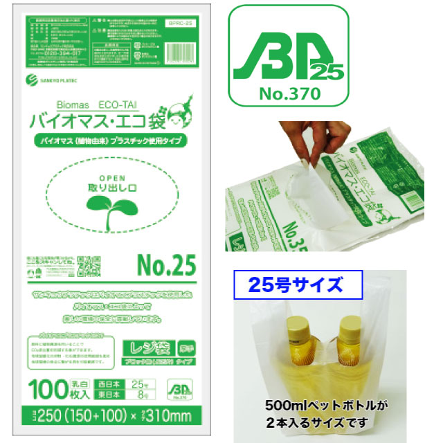 バイオマス・エコ袋のバイオマス原料含有率は25%以上です。