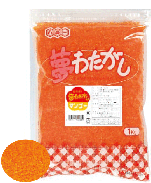 夢わたがしマンゴー味です!色・味・香りがついたわたがしが出来上がります。