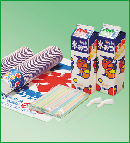 ●内容/氷みつ1.8L2本・紙カップ100個・スプーンストロー100本・シャワー2個・氷旗1枚