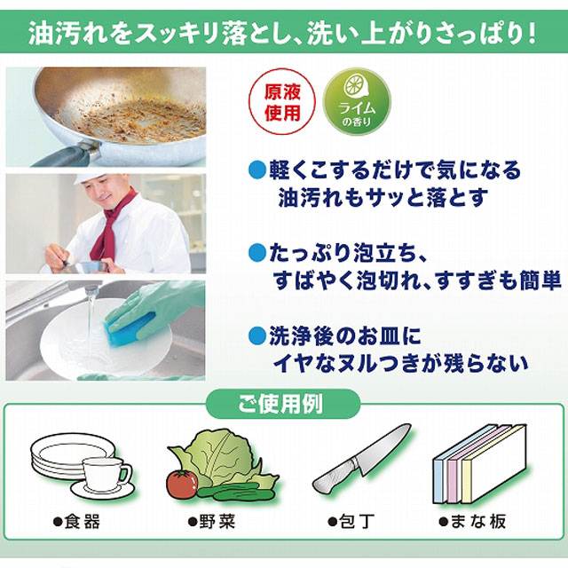 油汚れをスッキリ落とし、すばやい泡切れの食器用洗剤