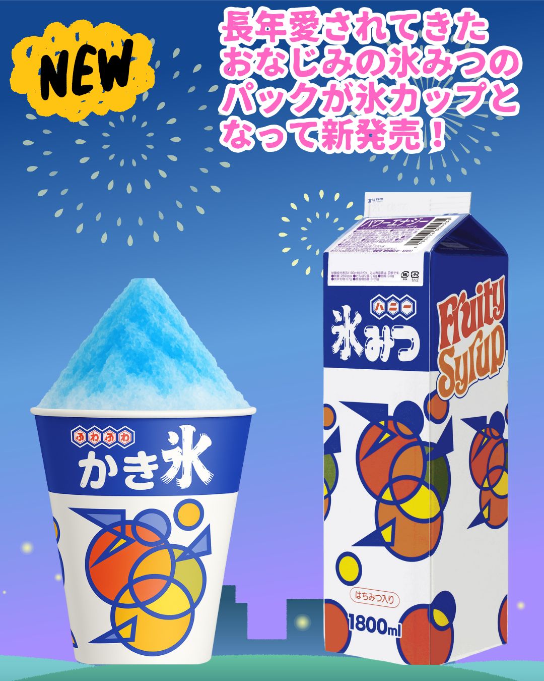 おなじみのハニーの氷みつ1.8Lパックのデザインが氷みつカップとなって登場です!